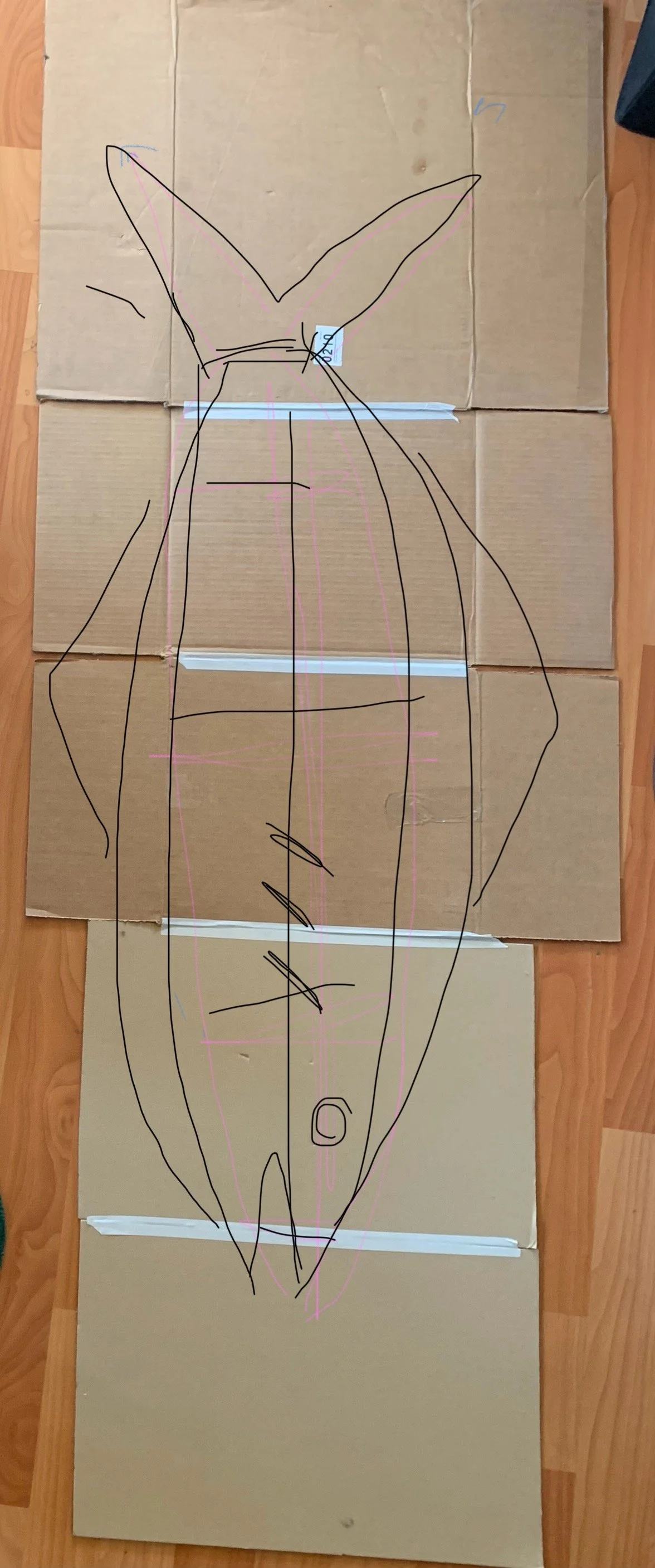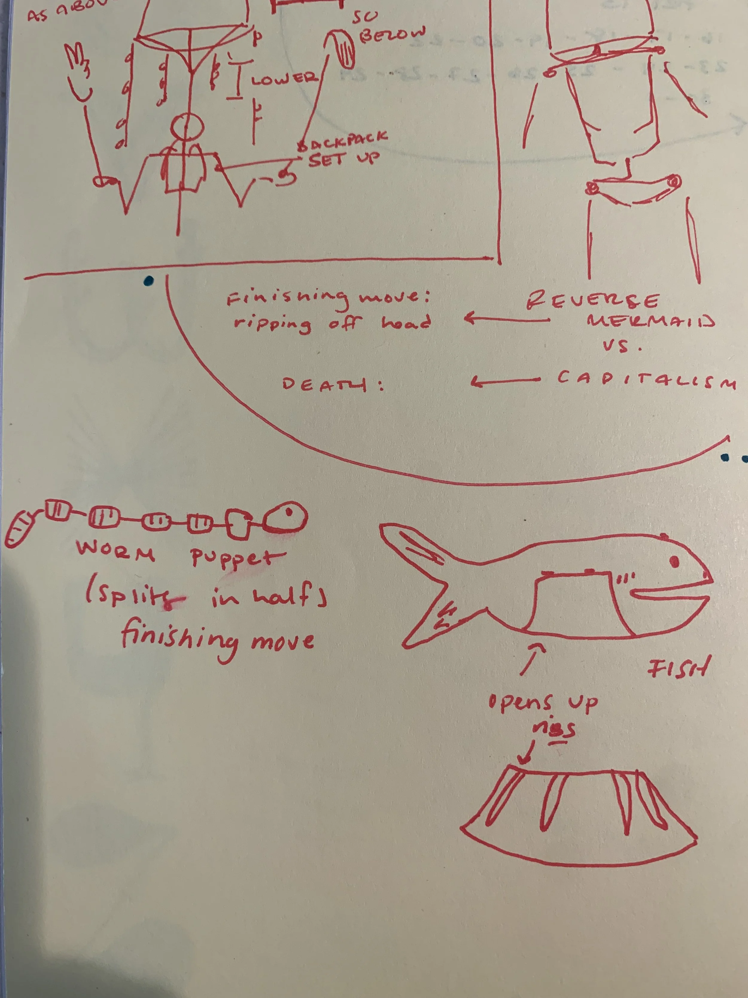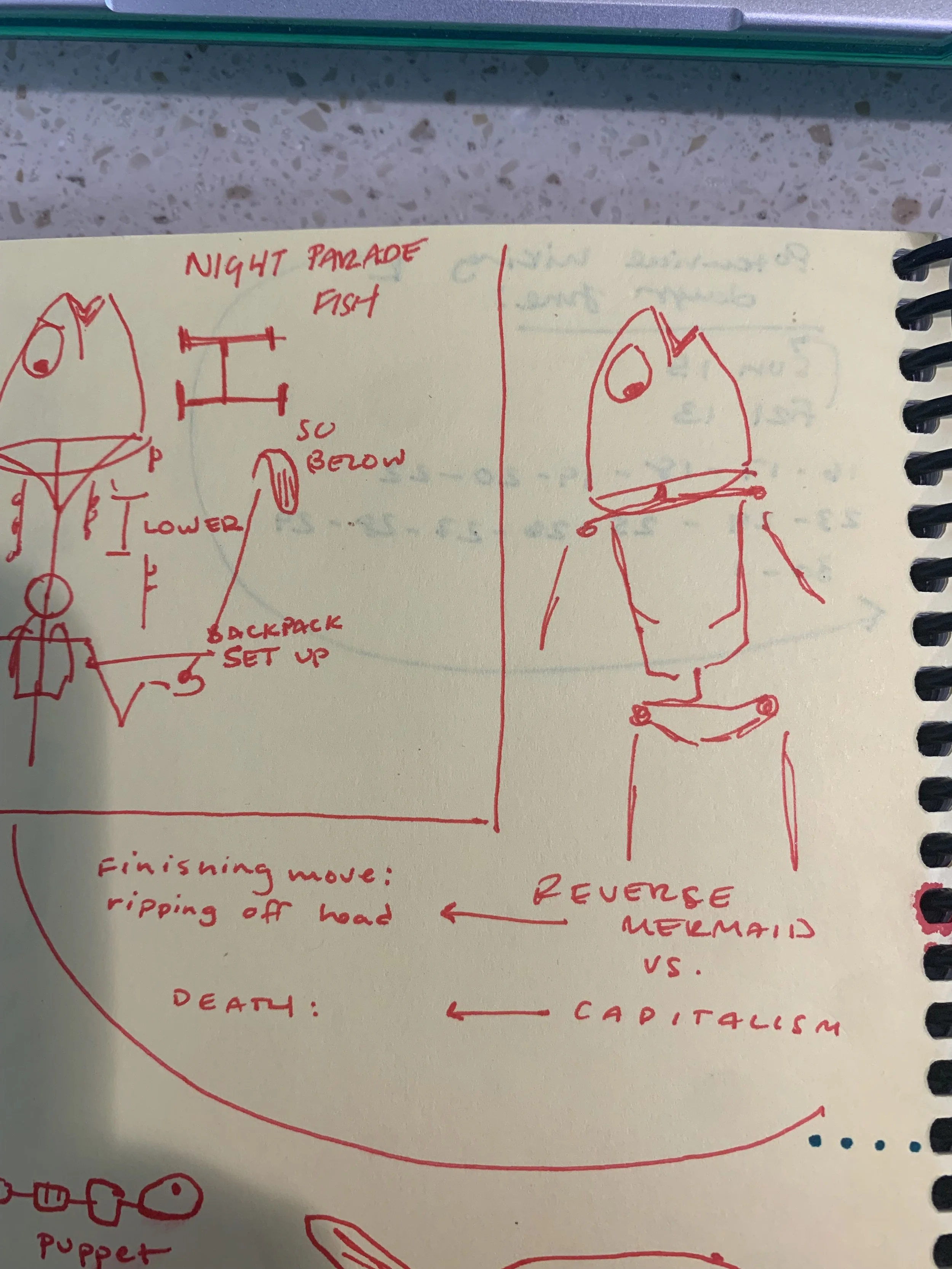big ol cardboard fish + misc puppets for Raining Chainsaws + the Night Parade ‘25