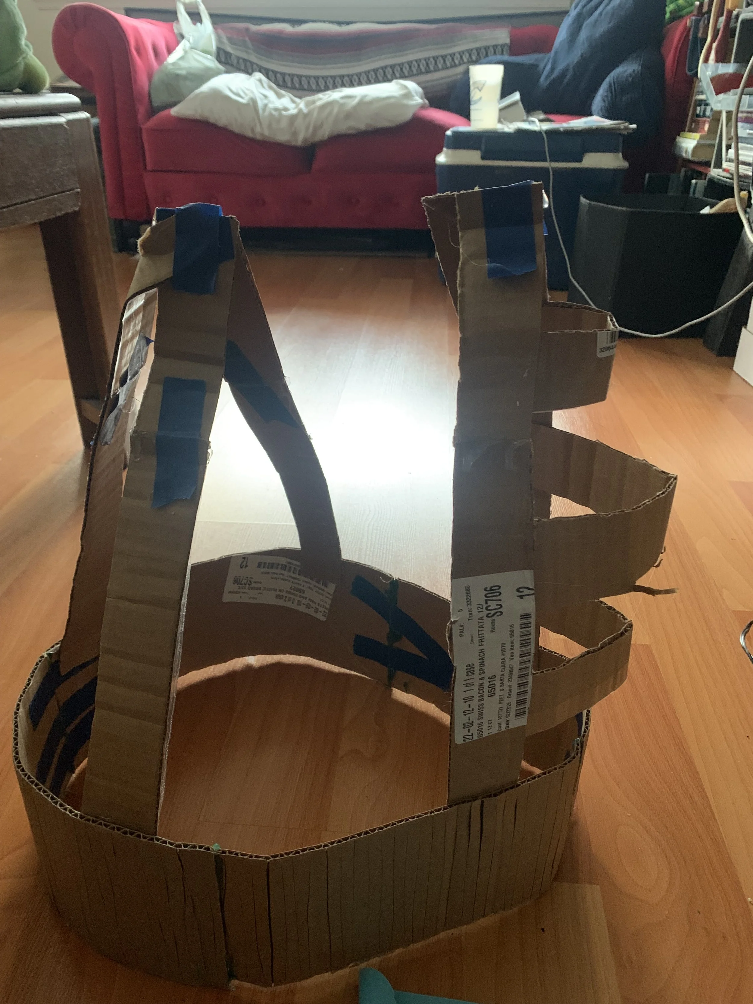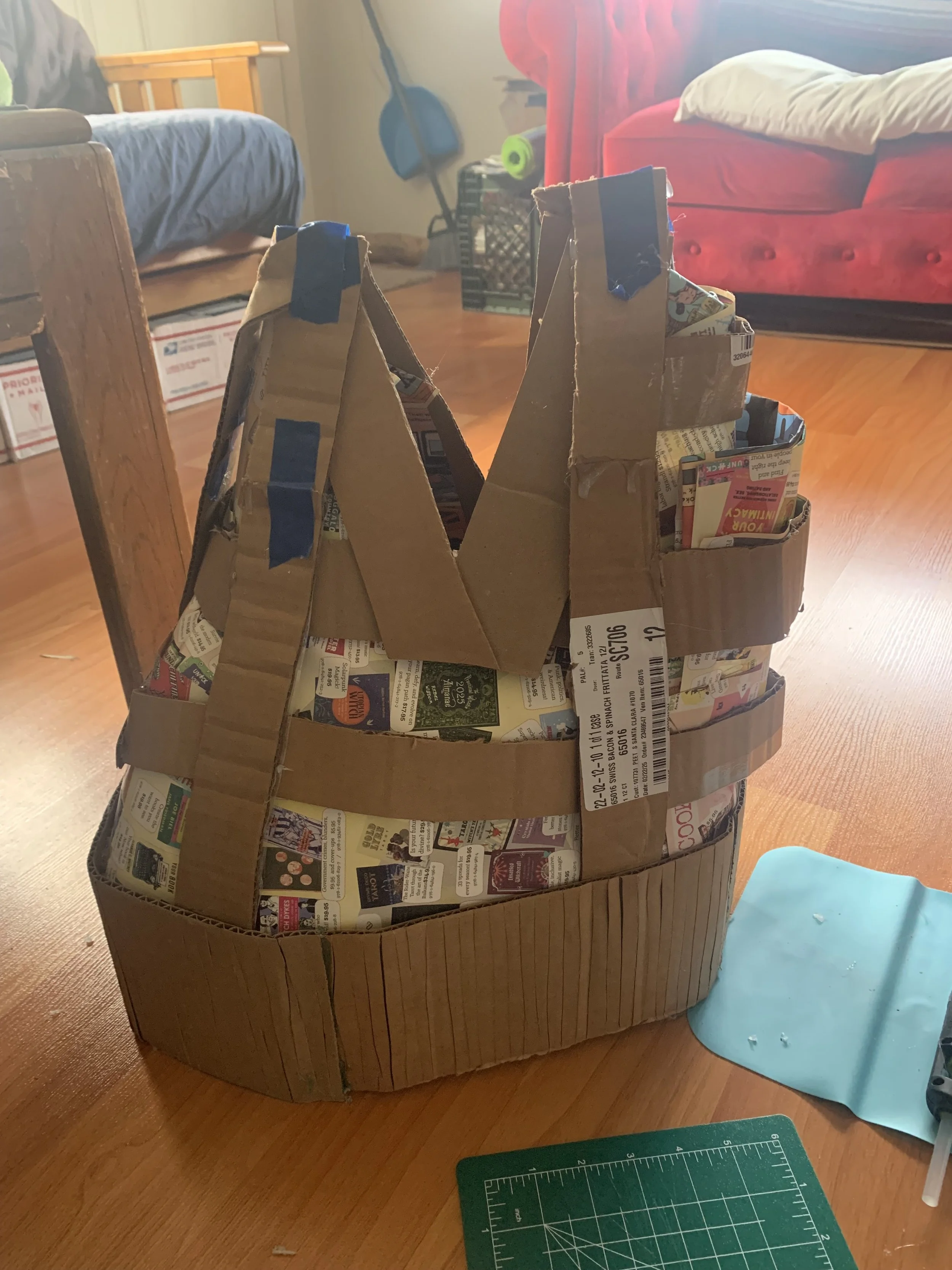 Kasaundra Couch (any/all pronouns) is an experimentalist. They use a variety of materials in their works- particularly cardboard and paper mache alongside other reclaimed and recycled materials.